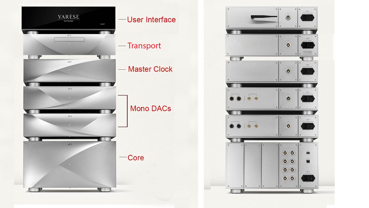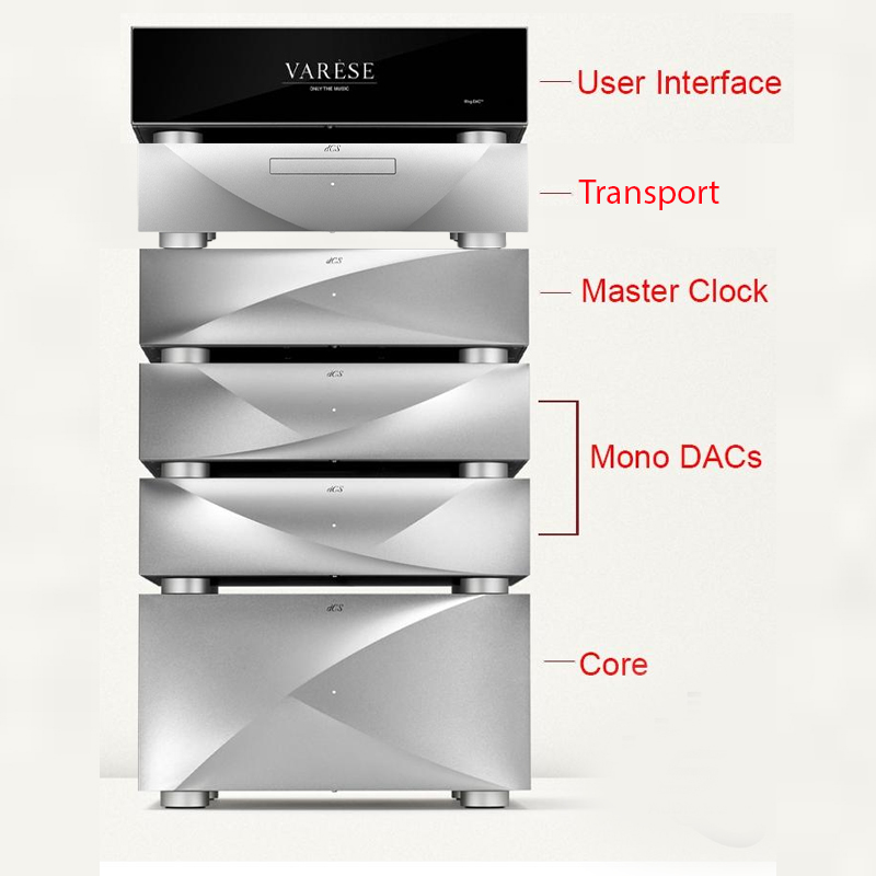 Hệ thống dCS Varèse bao gồm 6 thiết bị thành phần, được thiết kế thành 5 khối thân máy và đặt xếp tầng lên nhau.