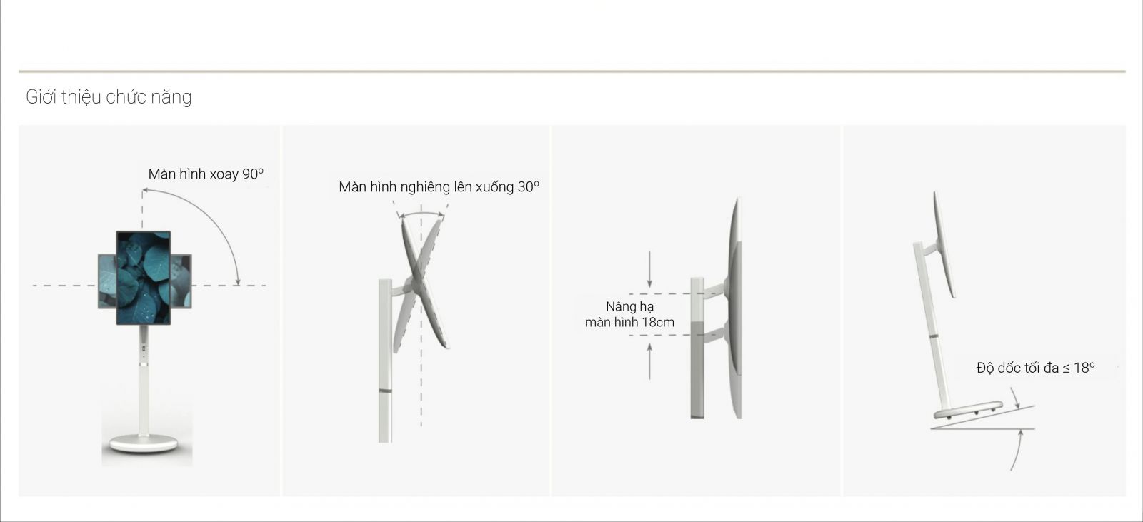 Độ nghiêng của màn hình là 30°.