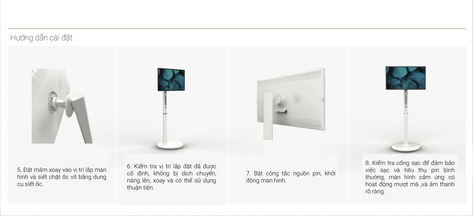Đây là một sản phẩm màn hình di động rất đặc trưng, không chỉ có đặc điểm của máy tính bảng, tivi và các thiết bị hiển thị khác mà còn tăng thêm ưu điểm về tính di động, tính cơ động và kích thước nhỏ, do đó có thể thích ứng với nhiều tình huống ứng dụng hơn, phòng khách, phòng ngủ, nhà bếp, ban công và thậm chí ngoài trời, có thể tích hợp rất tốt vào không gian và nền tảng Android có khả năng tương thích APP tuyệt vời. Do đó có thể tích hợp trực tiếp vào chuỗi sinh thái Android.