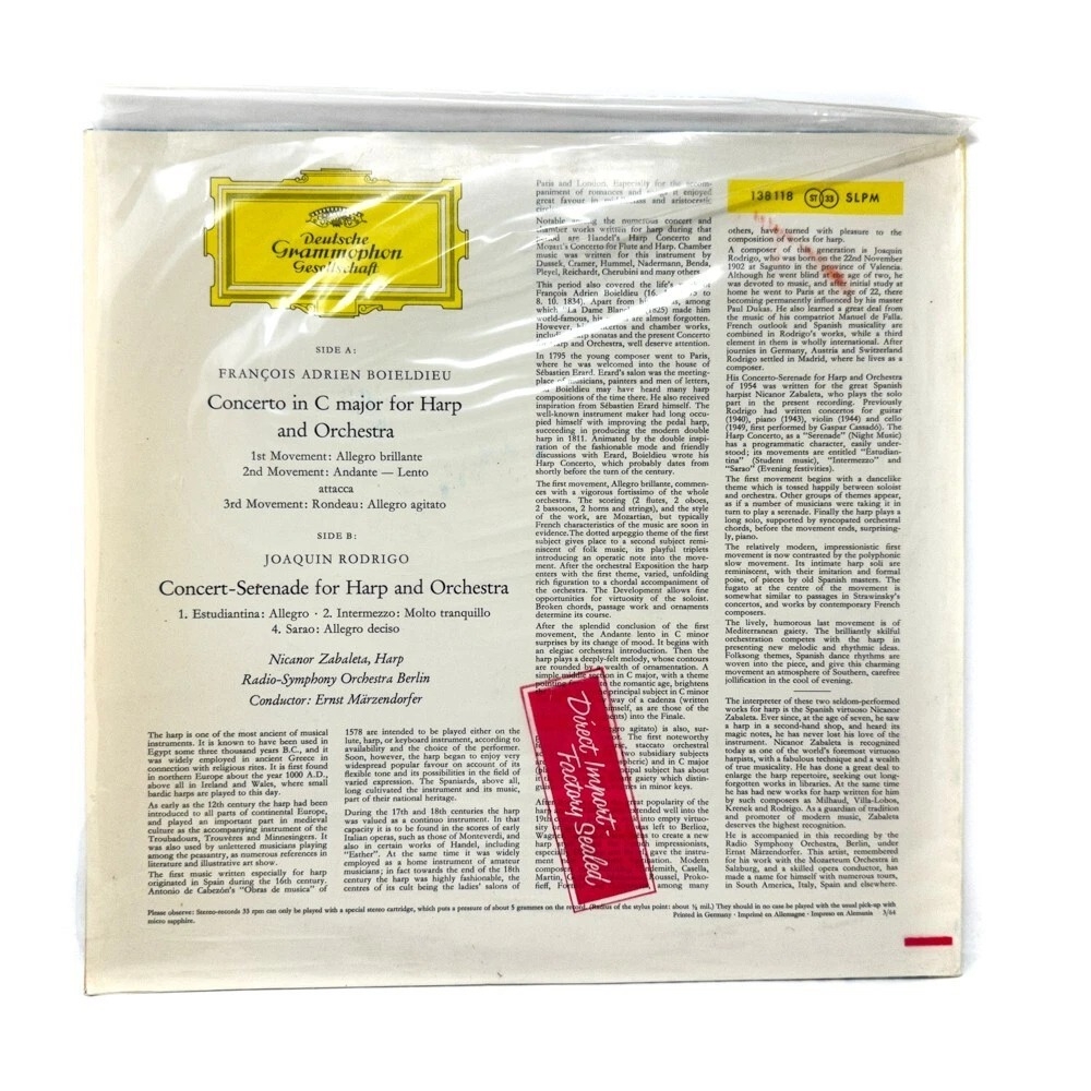 Đĩa LP Zabaleta Rodrigo Harp Concerto / (Tulip)