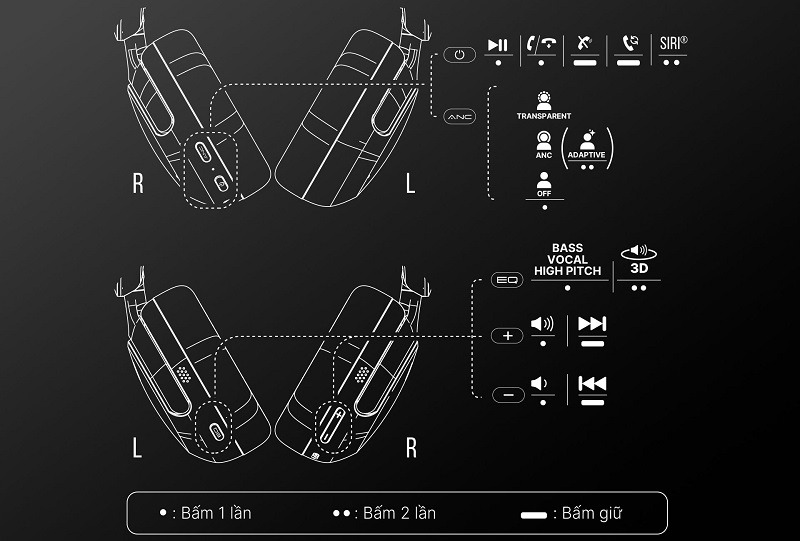 - Adaptive ANC: Chế độ tự động điều chỉnh mức khử ồn theo môi trường, tối ưu hóa trải nghiệm nghe mà không cần thao tác thủ công.