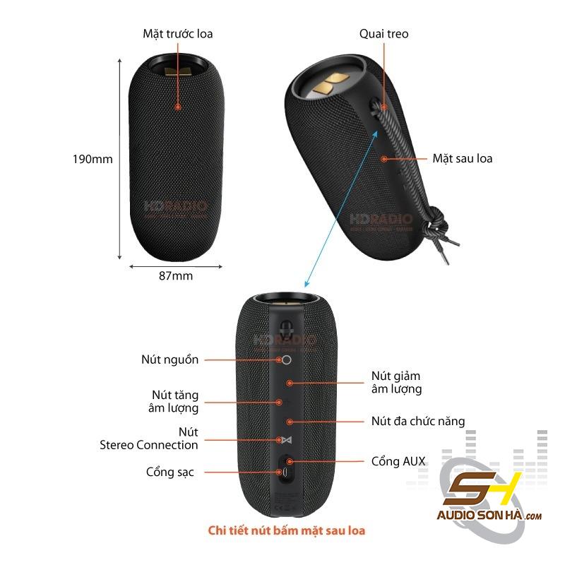 Âm thanh nổi với âm bass mạnh mẽ, loa sẽ lại cảm giác thưởng thức đầy đủ các tần số âm trầm, âm trung và âm cao phong phú.