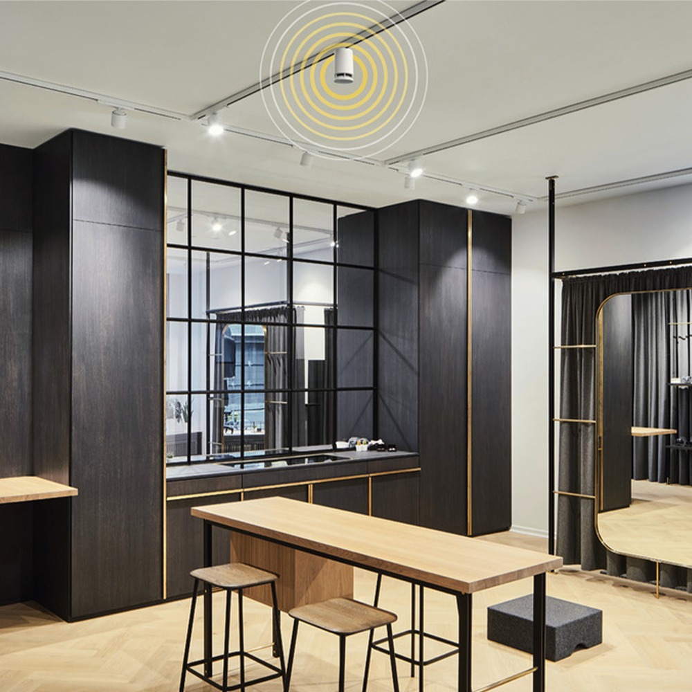 Spottune Omni Track là mẫu loa không dây cao cấp được thiết kế chuyên dụng cho các không gian thương mại (bán lẻ, nhà hàng, văn phòng, phòng trưng bày). Điểm đặc biệt nhất của dòng loa này là khả năng lắp đặt trực tiếp vào hệ thống ray đèn chiếu sáng (lighting track) có sẵn.