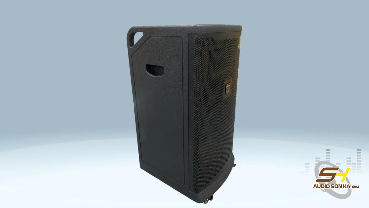 Đặc biệt, tay kéo tiện lợi cùng bánh xe di chuyển linh hoạt giúp người dùng dễ dàng mang MK6 Max theo bên mình. Phía trước loa được bảo vệ bởi lớp ê căng bằng kim loại sơn đen tĩnh điện giúp chống oxy hóa, chống những va đập ngoại cảnh và bảo vệ các củ loa bên trong được an toàn tuyệt đối.
