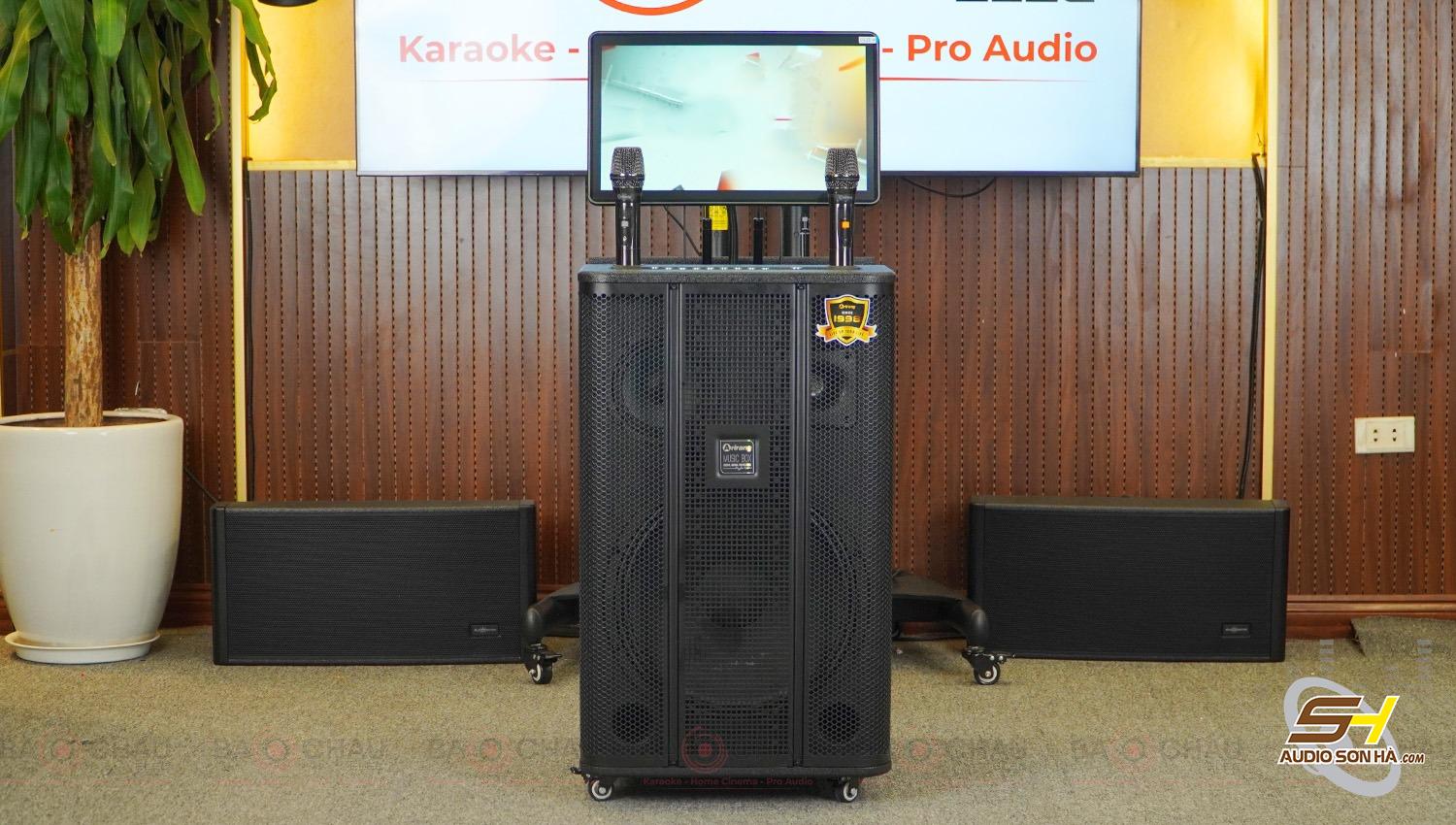 - Hệ thống 3 loa - 3 đường tiếng (Bass 40cm, Mid 14cm, Treble Neo 6cm) cùng công suất cực đại 1600W (PMPO) cho âm thanh sống động, giọng hát rõ nét.