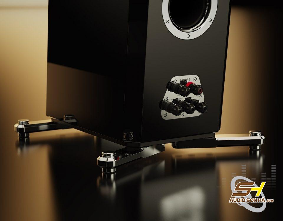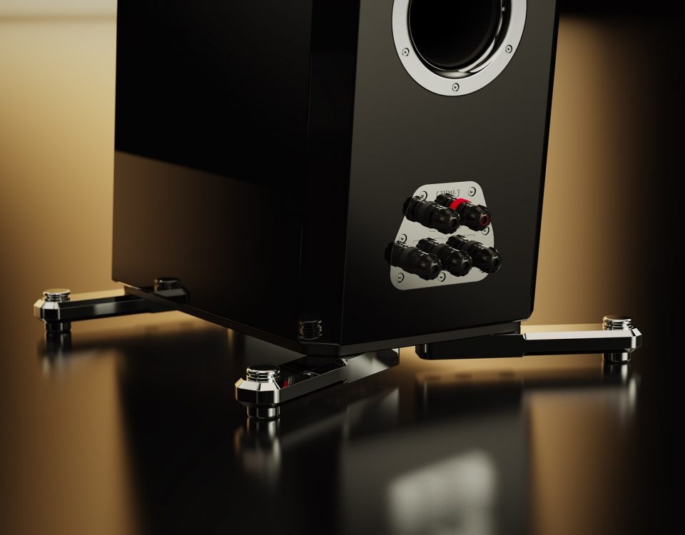 Tidal Piano Veneers đi kèm với 4 chân đế bằng thép không gỉ lớn cho mỗi loa. Mỗi chiếc đều được đúc từ một khối thép không gỉ khổng lồ và được đánh bóng bằng tay để hoàn thiện. Chân đế gắn các loa ở vị trí song song hoặc nghiêng, những bộ phận này cũng được làm thủ công 100% ở Đức.