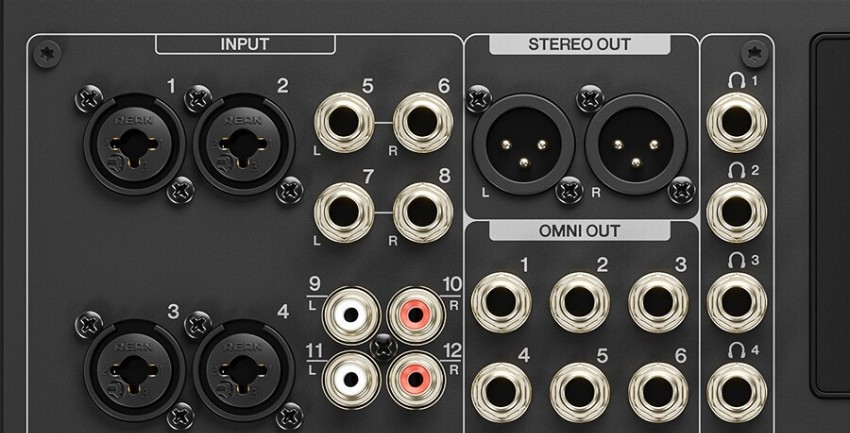 | Kênh input | 4 mono, 4 stereo, 1 Sound Pad, 2 FX |