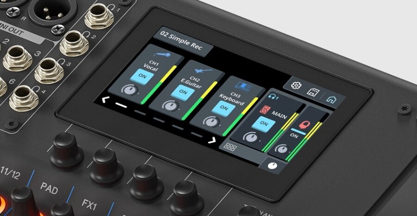 MGX12V được trang bị màn hình cảm ứng màu 4.3 inch kết hợp với 12 fader 60 mm cho khả năng điều khiển chính xác. Núm TOUCH AND TURN giúp thao tác nhanh các thông số quan trọng trong quá trình mix. Giao diện trực quan giúp người dùng làm quen nhanh, kể cả với mixer kỹ thuật số. Nhờ đó, quá trình vận hành luôn mượt mà và hiệu quả.