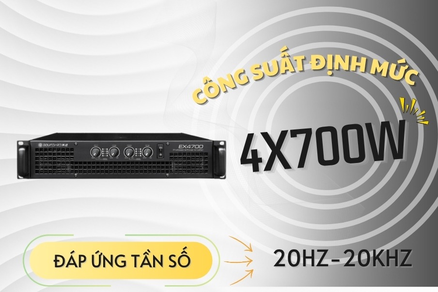 Nếu bạn đang tìm một bộ tăng âm điện đa kênh vừa mạnh, vừa bền, vừa sạch tiếng, bộ tăng âm điện SOUNDARD EX4700 là cái tên đáng cân nhắc. Đây không chỉ là một ampli 4 kênh thông thường, mà là một cỗ máy khuếch đại công suất được sinh ra để làm việc trong môi trường chuyên nghiệp – từ karaoke cao cấp, hội trường lớn, sân khấu biểu diễn đến quán bar – club sôi động.