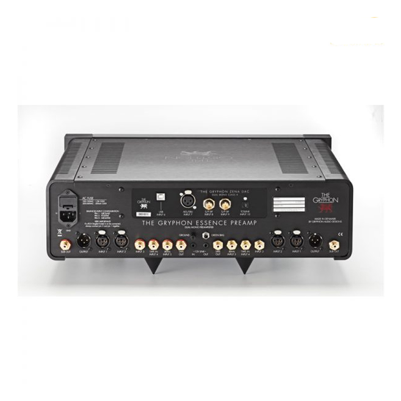 Gryphon Essence Preamplifier có 5 đầu vào tín hiệu gồm 2 XLR và 3 RCA, ngoài ra còn có thêm tùy chọn DAC và phono dạng module danh cho những người dùng có nhu cầu. Phần cấp nguồn của ampli cũng được bố trí cô lập, tách biệt hoàn toàn với mạch tín hiệu để không gây ra xung nhiễu, tiến ồn. Dây điện nguồn cũng được đi kín từ mặt sau của jack IEC (để cắm dây nguồn) đến công tắc AC, tránh đáng kể các nhiễu tần số 50/60Hz.