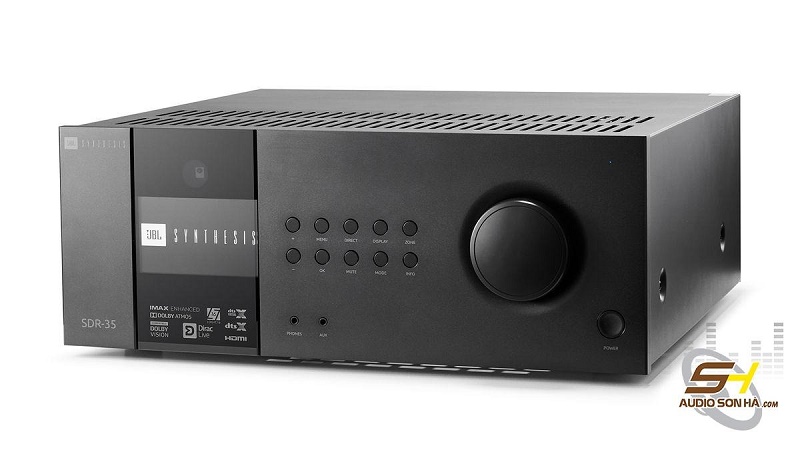 Với 16 kênh xử lý âm thanh vòm, Amply xem phim JBL Synthesis SDR-35 còn được khuếch đại Class G hiệu suất cao. Sản phẩm còn hỗ trợ định dạng âm thanh 3D (Dolby Atmos, DTS:X, Auro 3D, IMAX Enhanced). Tích hợp công nghệ hiệu chỉnh phòng Dirac Live và tính năng âm thanh mạng Dante. Được đánh giá cao về độ sạch, chi tiết và sức mạnh âm thanh cao.