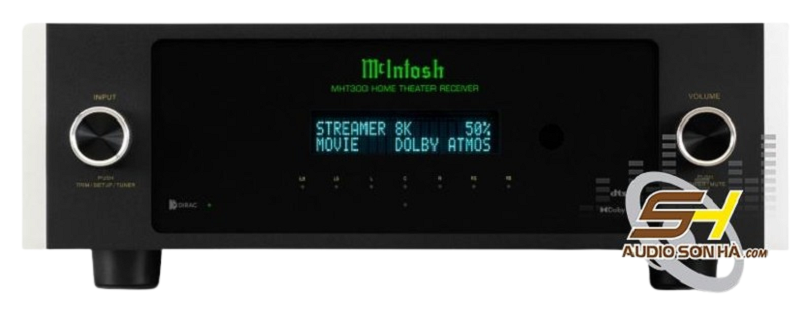 Đây cũng là một trong những mẫu Amply xem phim thuộc phân khúc cao cấp. MHT 300 cung cấp công suất mạnh mẽ, thực tế cho 7 kênh của thiết bị. Sản phẩm còn hỗ trợ âm thanh Dolby Atmos, DTS:X, video 8K/60Hz, 4K/120Hz và công nghệ hiệu chỉnh phòng Dirac Live. Thiết kế đặc trưng của McIntosh với mặt kính đen và logo phát sáng.