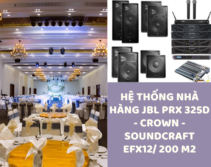 Hệ thống Nhà hàng JBL PRX 325D - CROWN - SOUNDCRAFT EFX12/ 200 m2