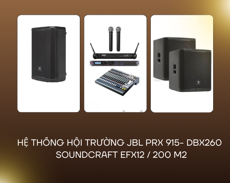 Combo JBL PRX 915 - DBX260 - SOUNDCRAFT EFX12 là hệ thống âm thanh chuyên nghiệp cao cấp, phù hợp cho nhà hàng, cà phê, hội trường hoặc phòng họp diện tích đến 200m², mang lại âm thanh mạnh mẽ, rõ ràng và linh hoạt cho biểu diễn, phát nhạc nền hoặc hội nghị.