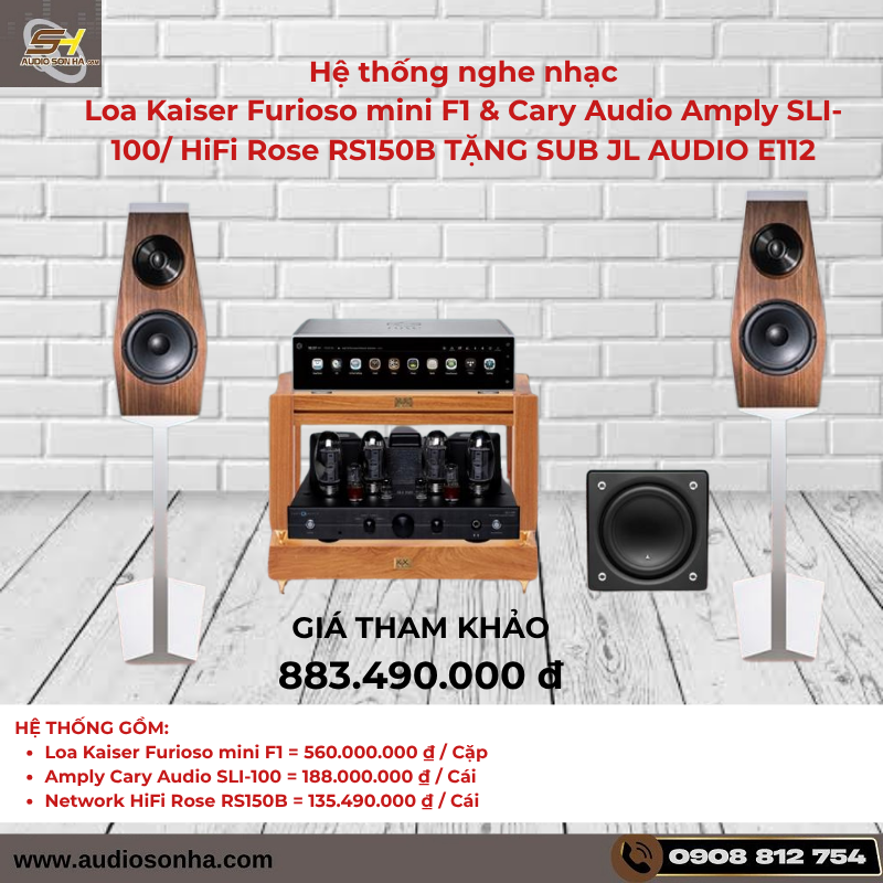 7. Hệ thống nghe nhạc Loa Kaiser Furioso mini F1 & Cary Audio Amply SLI-100/ HiFi Rose RS150B TẶNG SUB JL AUDIO E112