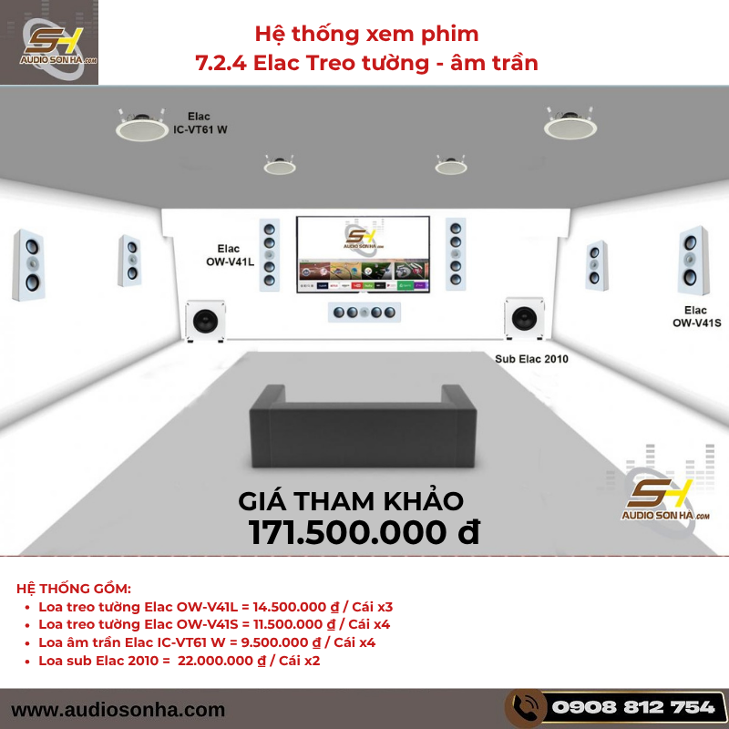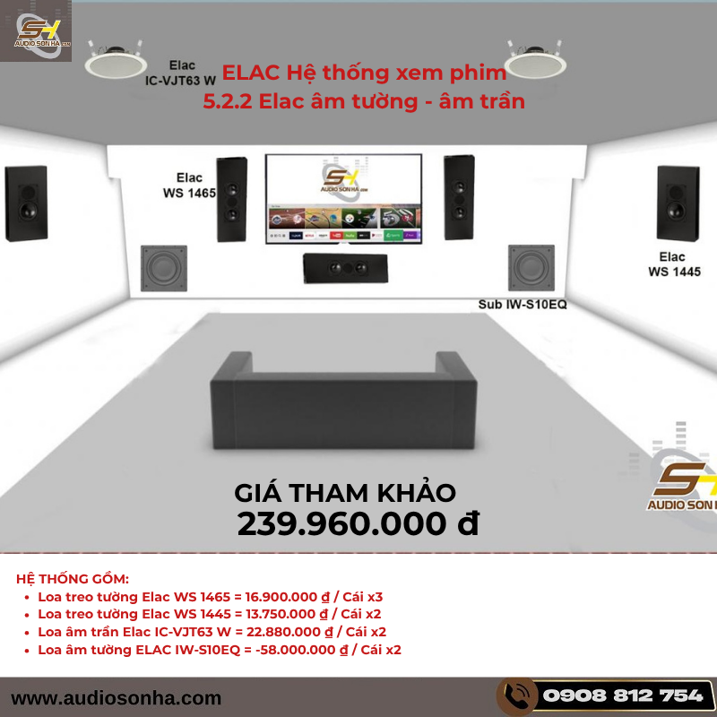 10. ELAC Hệ thống xem phim 5.2.2 Elac âm tường - âm trần