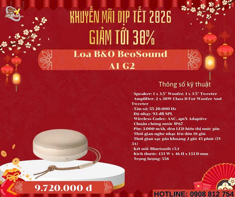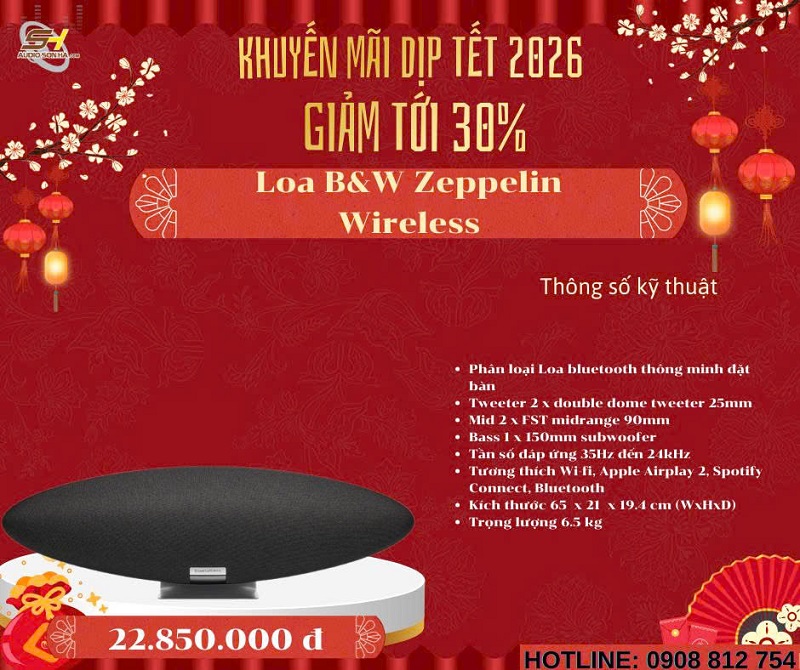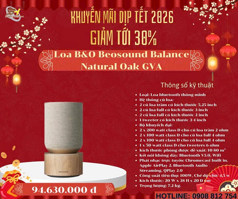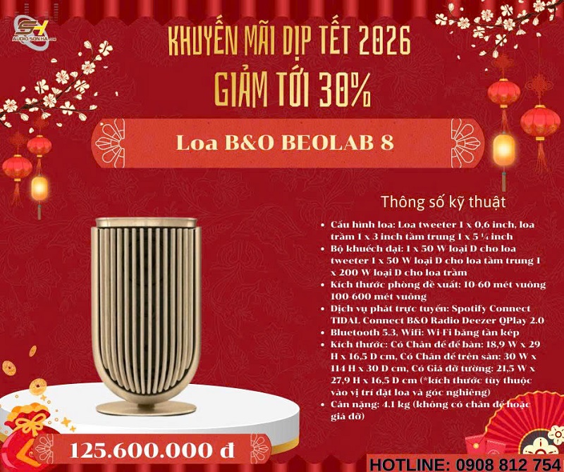 Chào mừng năm mới 2026! Để đón Tết Nguyên Đán Giáp Thìn thật rực rỡ và trọn vẹn âm nhạc, Audio Sơn Hà triển khai chương trình khuyến mãi đặc biệt giảm tới 30% cho các mẫu loa không dây cao cấp từ những thương hiệu danh tiếng thế giới: Bowers & Wilkins (B&W), Bang & Olufsen (B&O), KEF, Elac, Devialet, Yamaha và Transparent. Đây là cơ hội vàng để bạn sở hữu hệ thống âm thanh không dây đẳng cấp, chất âm đỉnh cao với giá ưu đãi chưa từng có - chỉ từ nay đến hết Tết!