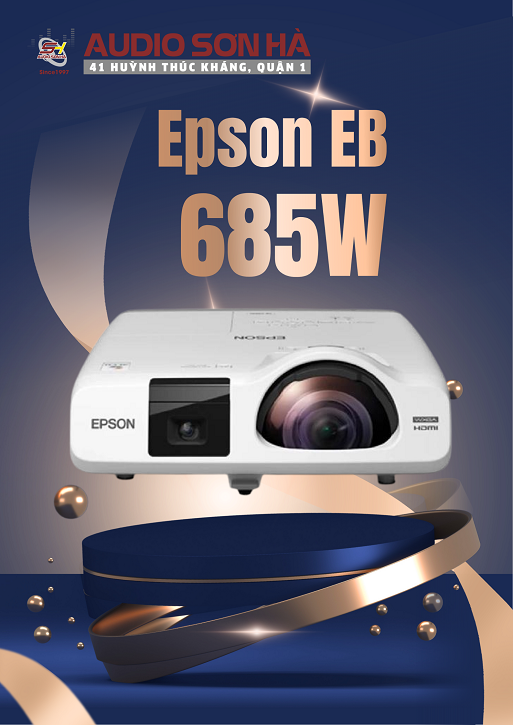 Epson EB-685W là máy chiếu gần cơ bản nhưng hiệu quả cao, đặt cách tường khoảng 50cm để chiếu màn hình rộng. Hình ảnh sáng mạnh, màu sắc sống động và kết nối đa dạng. Máy có loa tích hợp rõ ràng, hỗ trợ trình chiếu không dây. Lý tưởng cho lớp học hoặc phòng họp, nơi cần hình lớn mà không gian hạn chế. Với độ bền cao, đây là lựa chọn tin cậy cho sử dụng hàng ngày.