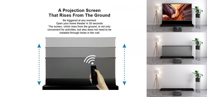 Phiên bản 100 inch để sàn, dễ setup với máy chiếu siêu gần. Vật liệu ALR giúp hình ảnh sáng và màu sắc đẹp, phù hợp gia đình nhỏ muốn biến phòng khách thành rạp phim nhanh chóng.